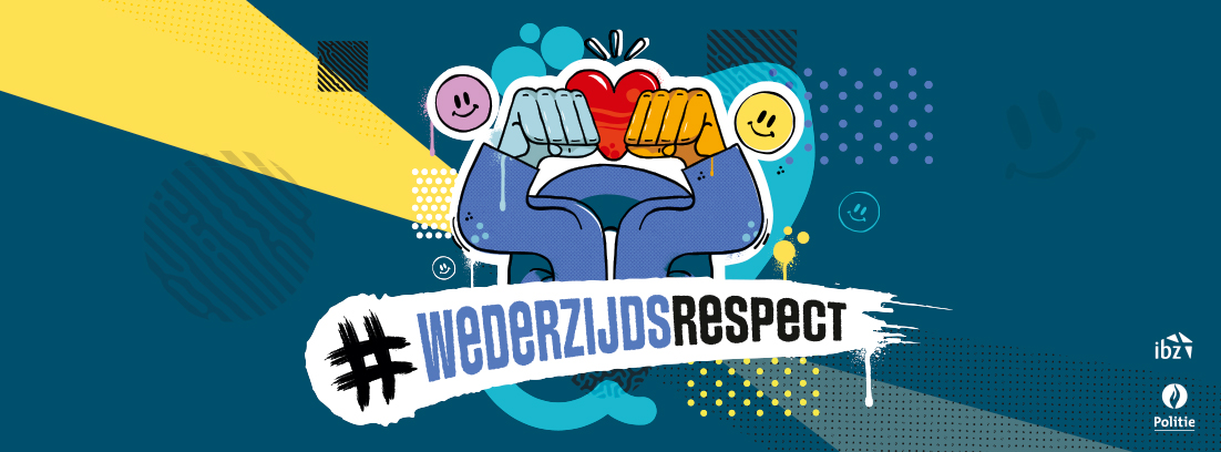De campagne 'Wederzijds Respect' beoogt een positieve dialoog tot stand te brengen tussen burgers en vertegenwoordigers van de veiligheidsberoepen. Toch moet iedereen zijn steentje bijdragen. Wij nodigen je dan ook uit om met onze politiemensen te komen praten wanneer je hen ontmoet of om naar onze infosessies te komen. Want samen komen we er!