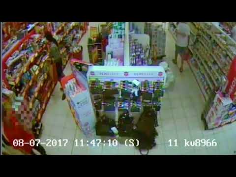 Le premier auteur est âgé entre 40 et 50 ans, est de corpulence normale et a le crâne dégarni. Il portait un polo gris avec des lunettes accrochées à la boutonnière, un bermuda foncé et des sandales de type “flip-flop”. Il était en possession d’un sac en papier avec un logo.
