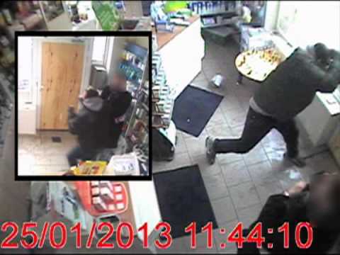 De tweede dader is normaal gebouwd, groter dan zijn handlanger en tussen de 20 en 30 jaar oud. Hij heeft kort donker geschoren haar. Hij was gekleed in een dikke jas met rode inscriptie ter hoogte van het rechterschouderblad, een grijze sweater met kap, grijze kousen, een blauwe jeans en lichte sportschoenen met het logo NIKE op de zijkanten en witte zolen.